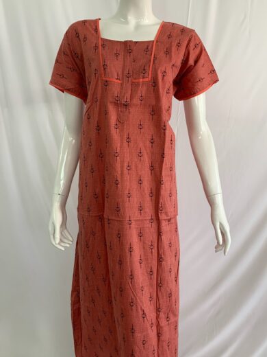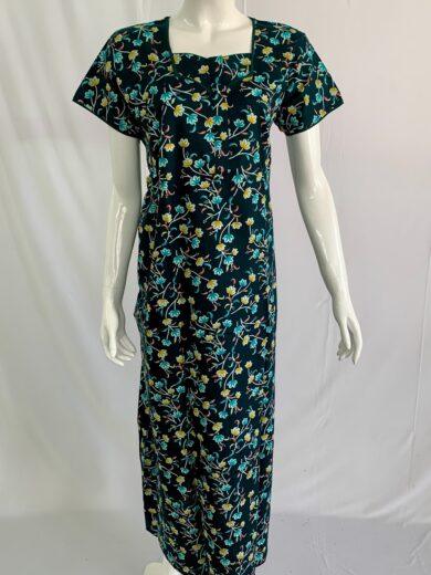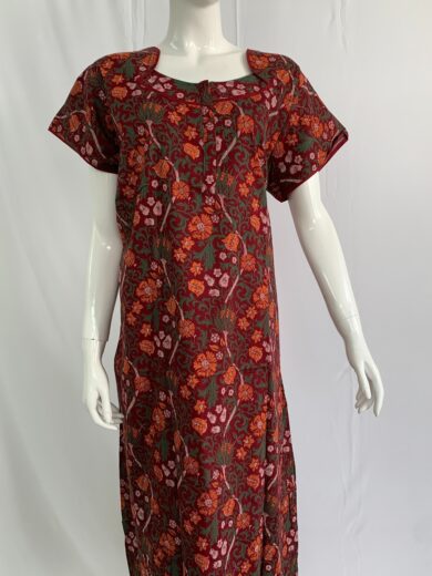PONNIS Premium Cotton A-line Nighty with Front Zip and Floral design (Ruby)