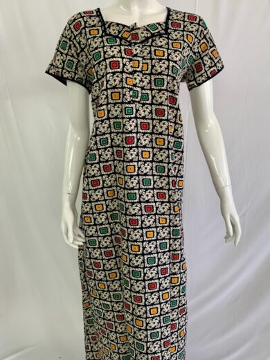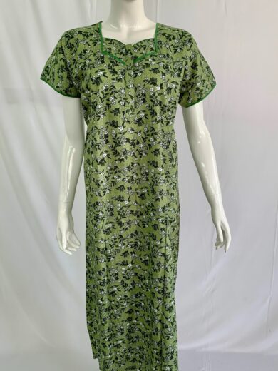 PONNIS Women’s Cotton A-line Printed Detailing Nighty with Lace and Front Zip inside Mobile Pocket (Toyota)/546