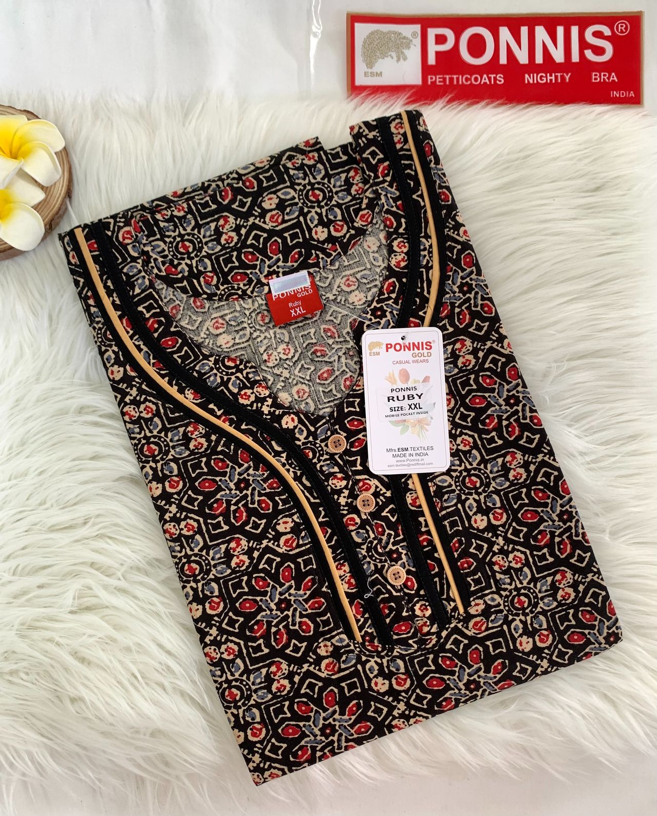Made with Premium PONNIS Ruby cotton Nighty is soft and breathable and designed for all day comfort.