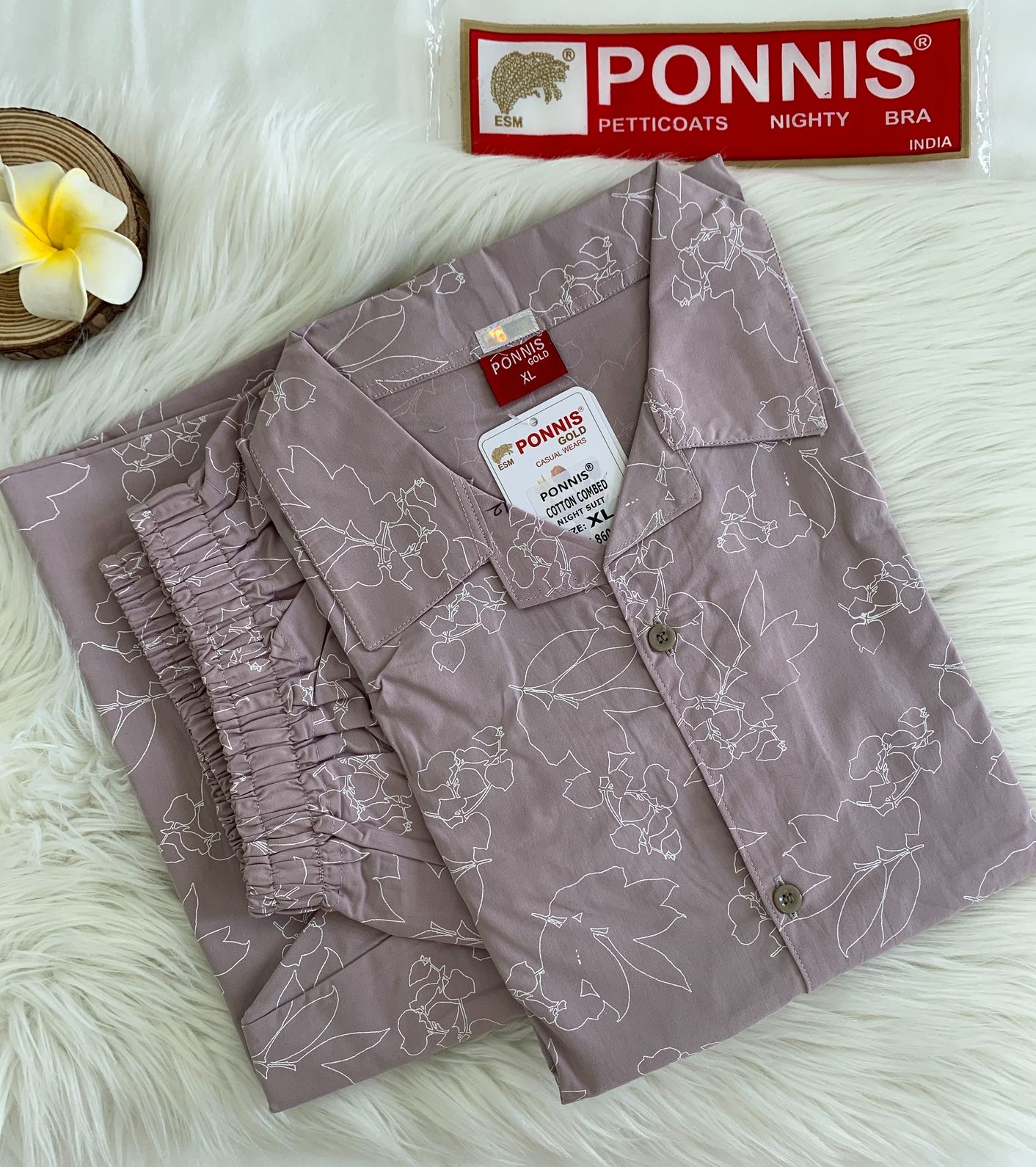 Beautiful 2Pcs Cotton Night Suit with Bottom