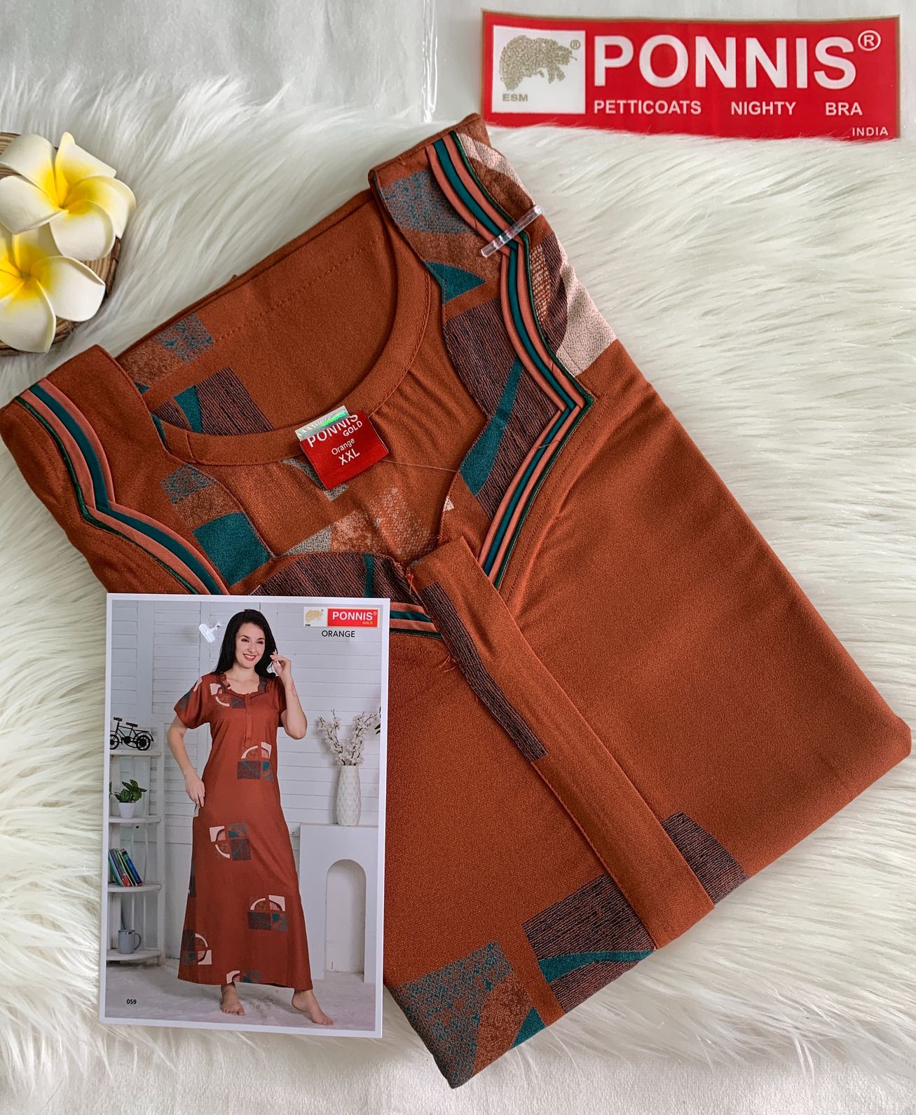 Upgrade your nightwear with this beautifully crafted PONNIS – Orange Nighty made from soft and breathable Alphine Cotton