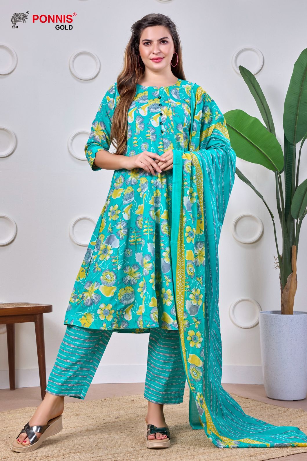 Beautiful Mul-Mul Cotton Anarkali 3Pcs Salwar Set with Kurta inside Mobile Pocket and Front Show Button, Elastic waist pant and soft duppatta.