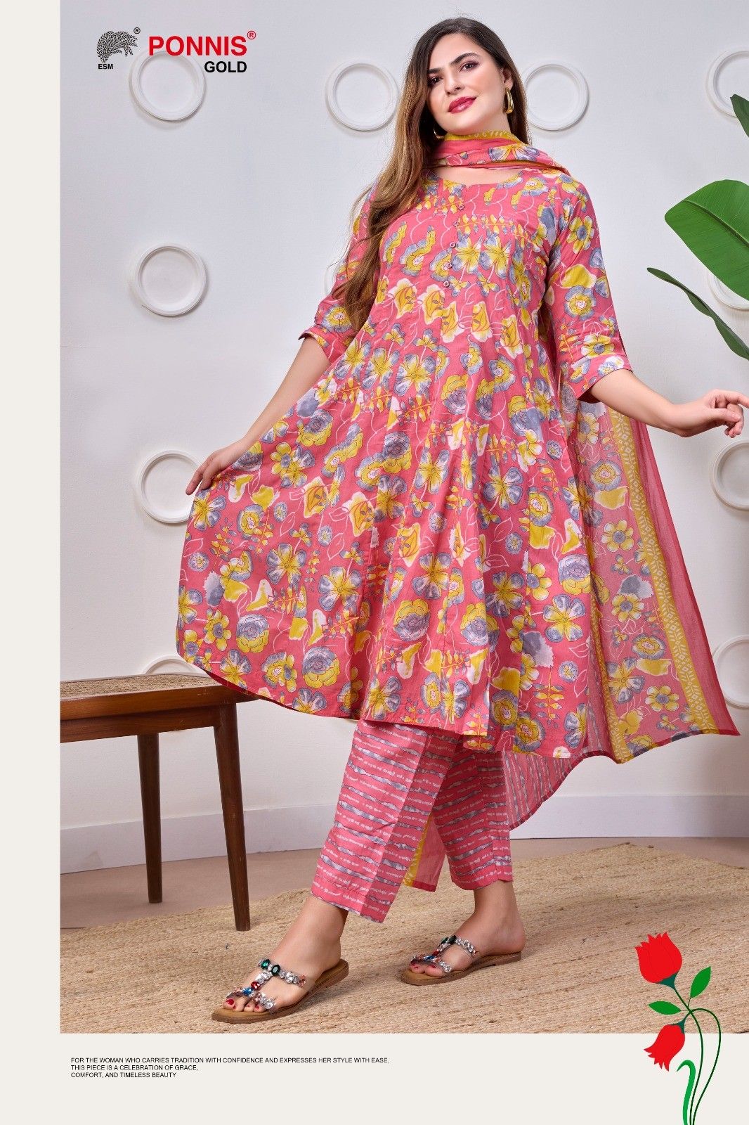 Beautiful Mul-Mul Cotton Anarkali 3Pcs Salwar Set with Kurta inside Mobile Pocket and Front Show Button, Elastic waist pant and soft duppatta.