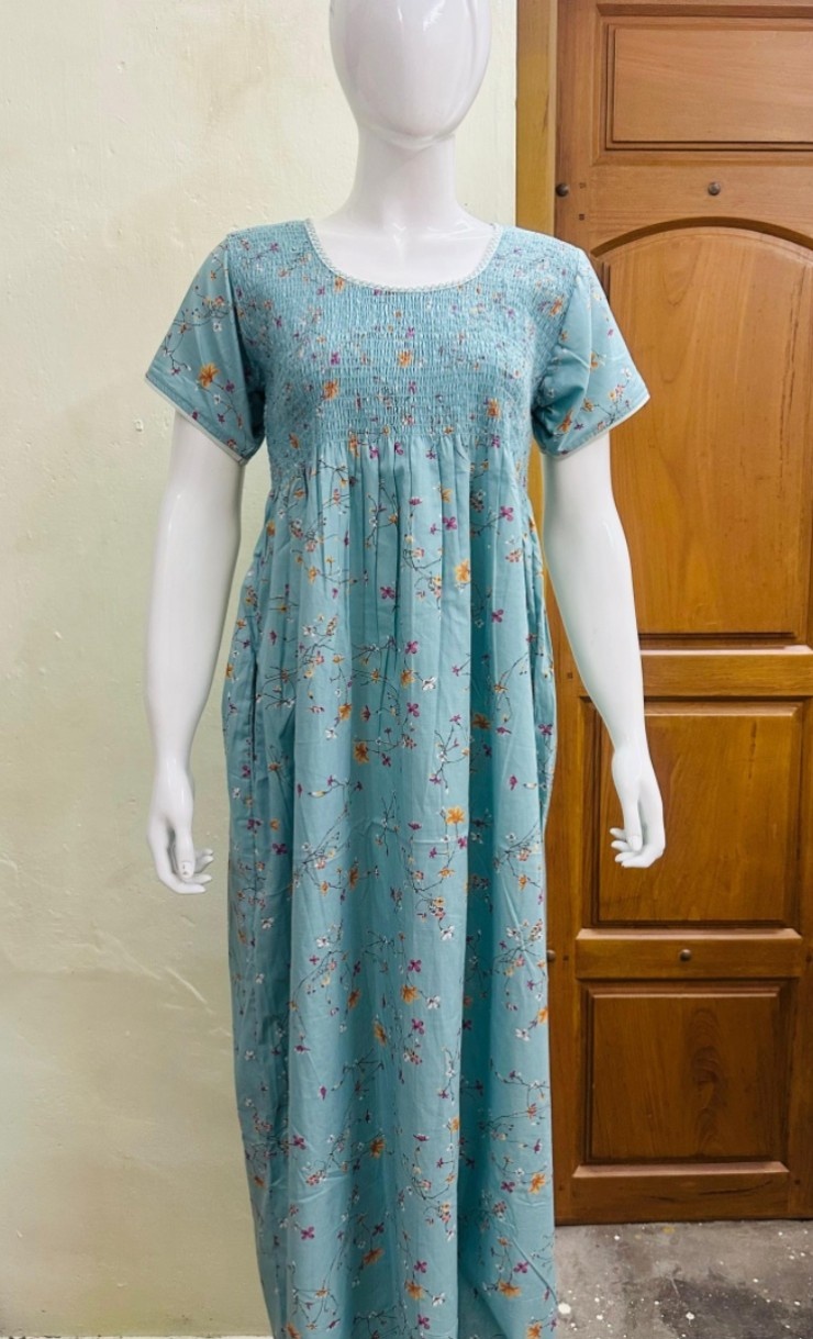 Stay comfortable and stylish with elegante PONNIS Orange Smocking Nighty in featuring delicate floral print.