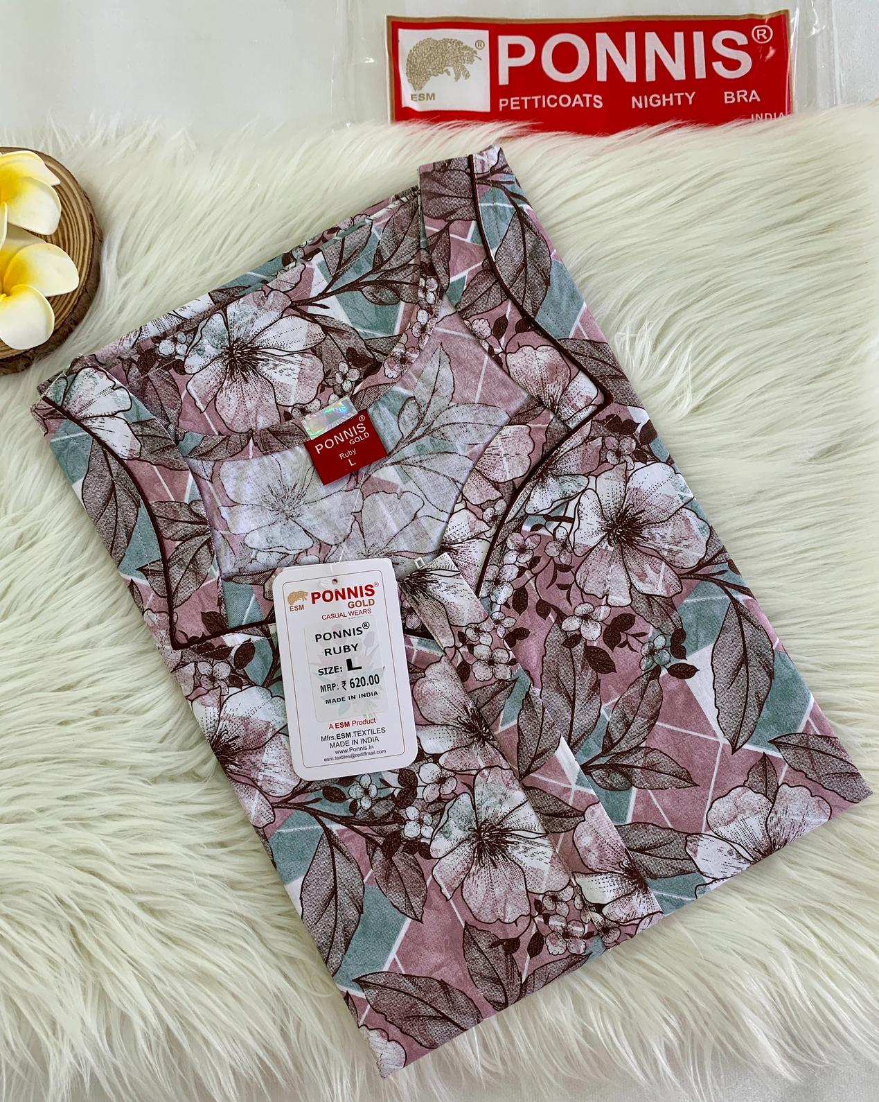 Made with Premium PONNIS Ruby cotton Nighty is soft and breathable and designed for all day comfort.