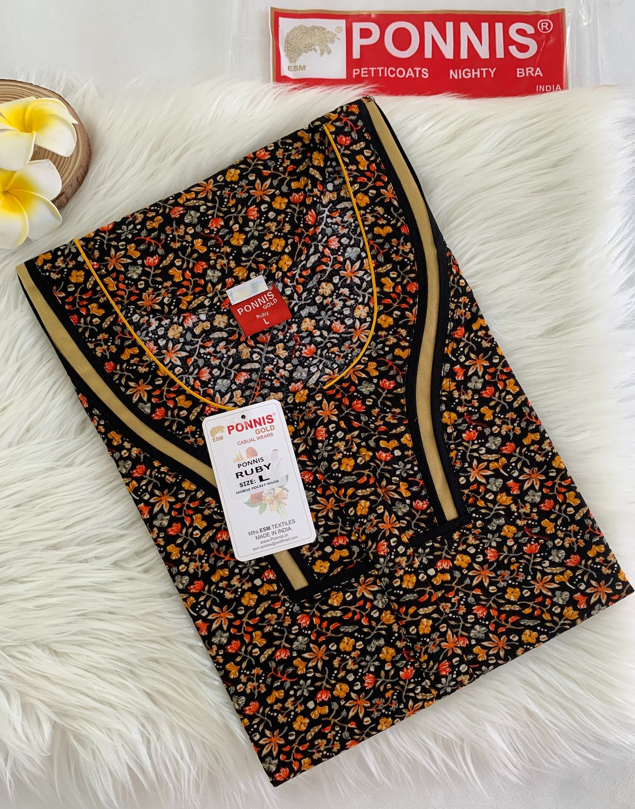 Made with Premium PONNIS Ruby cotton Nighty is soft and breathable and designed for all day comfort.
