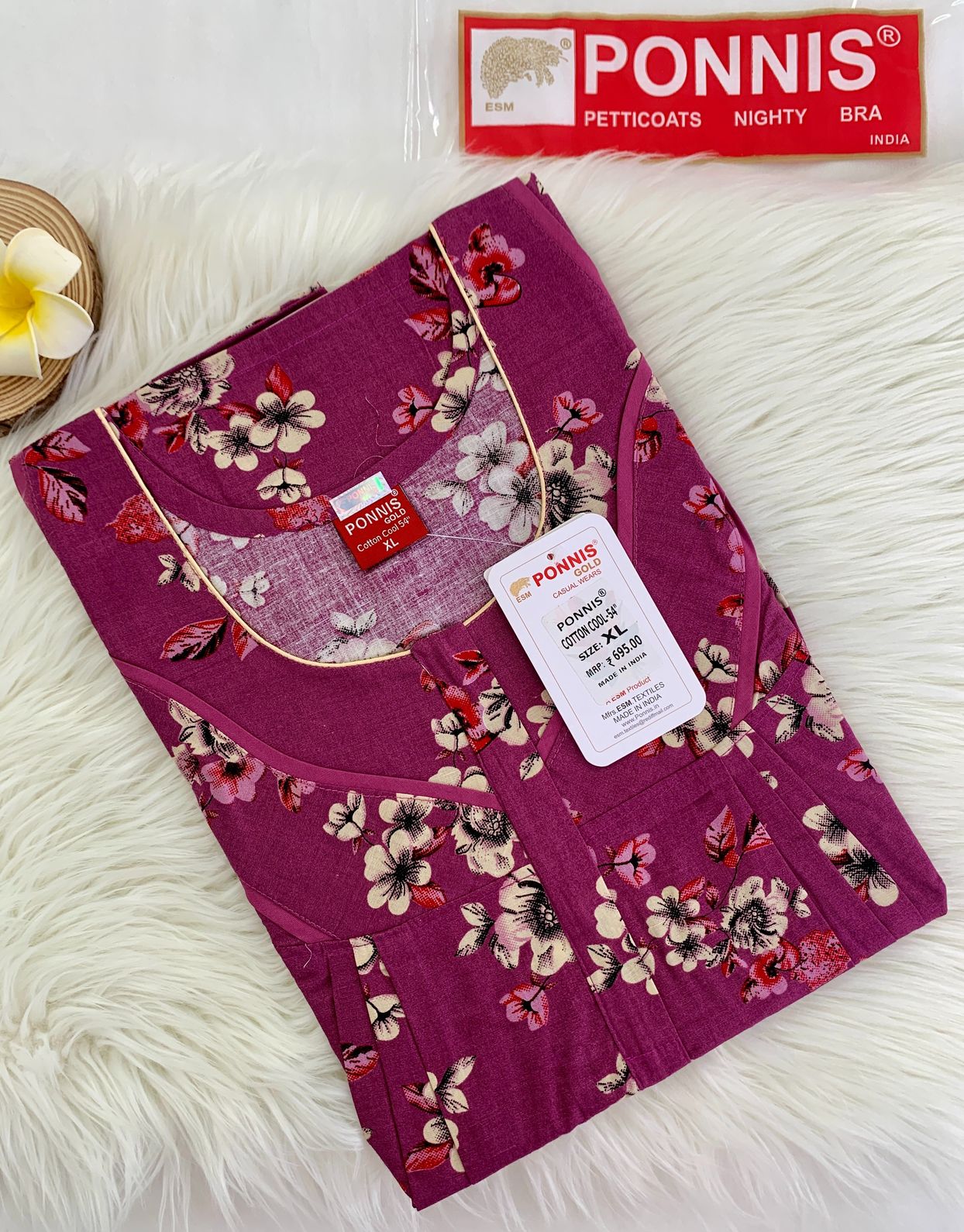 Enjoy un matched comfort and style with the PONNIS Cotton Cool – Prill Style Nighty, Specially designed for plus size and elderly women who value ease and elegance.