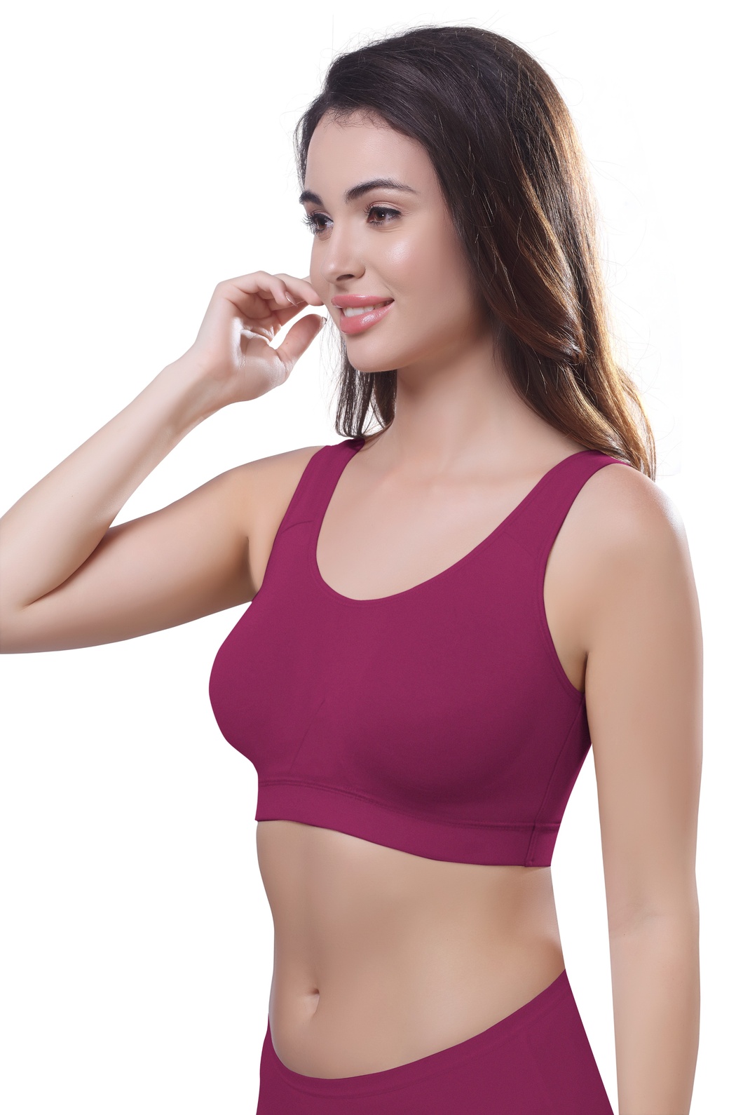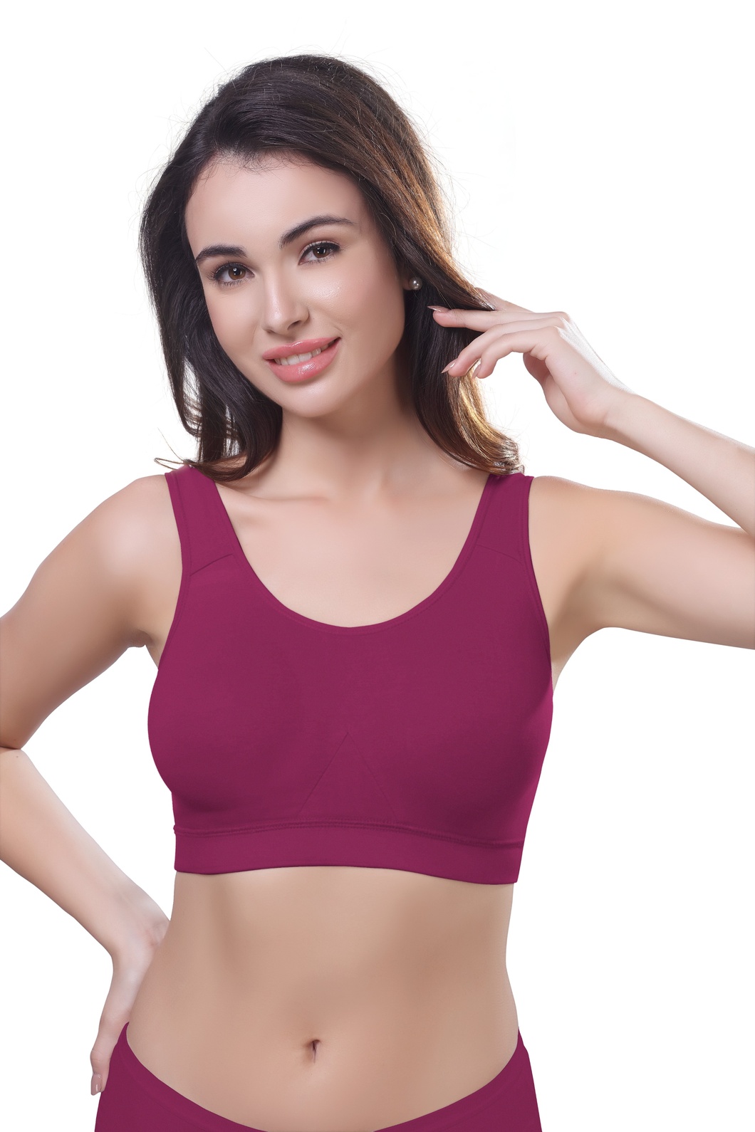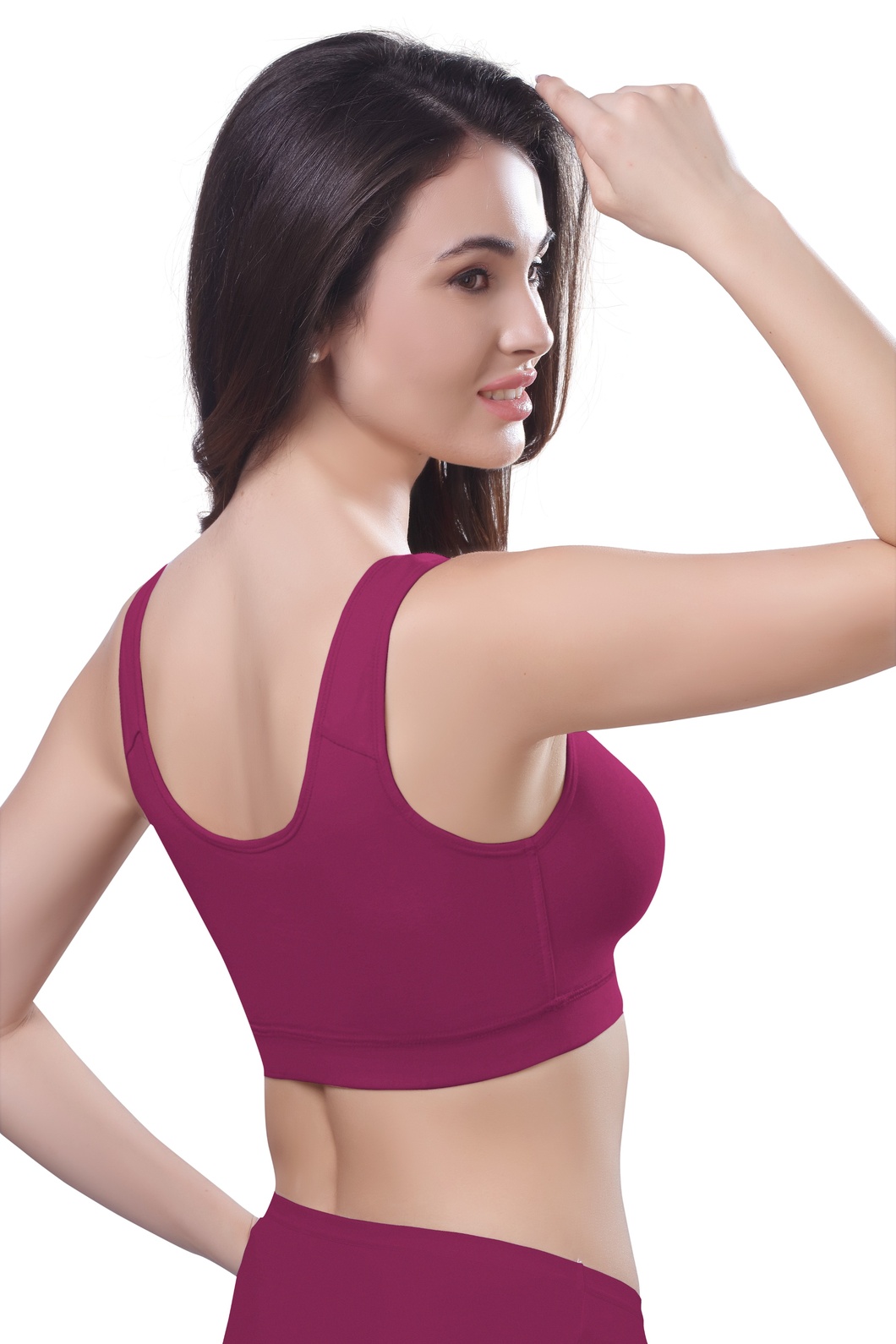 Made with 100% Premium Cotton , this bra ensures breathability and softness against the skin . Its full coverage design and wide straps offer maximum support without compromising on style . Whether you’re at home , at work , or on the move , Sports Bra (SB16) keeps you confident and comfortable throughout the day.